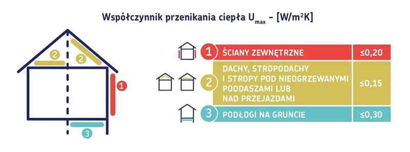 Jeśli chodzi budynki mieszkalne, czyli takie gdzie obliczeniowa temperatura nie powinna spadać poniżej 16C, wymagania obowiązujące od 1 stycznia 2021 roku wyglądają następująco: